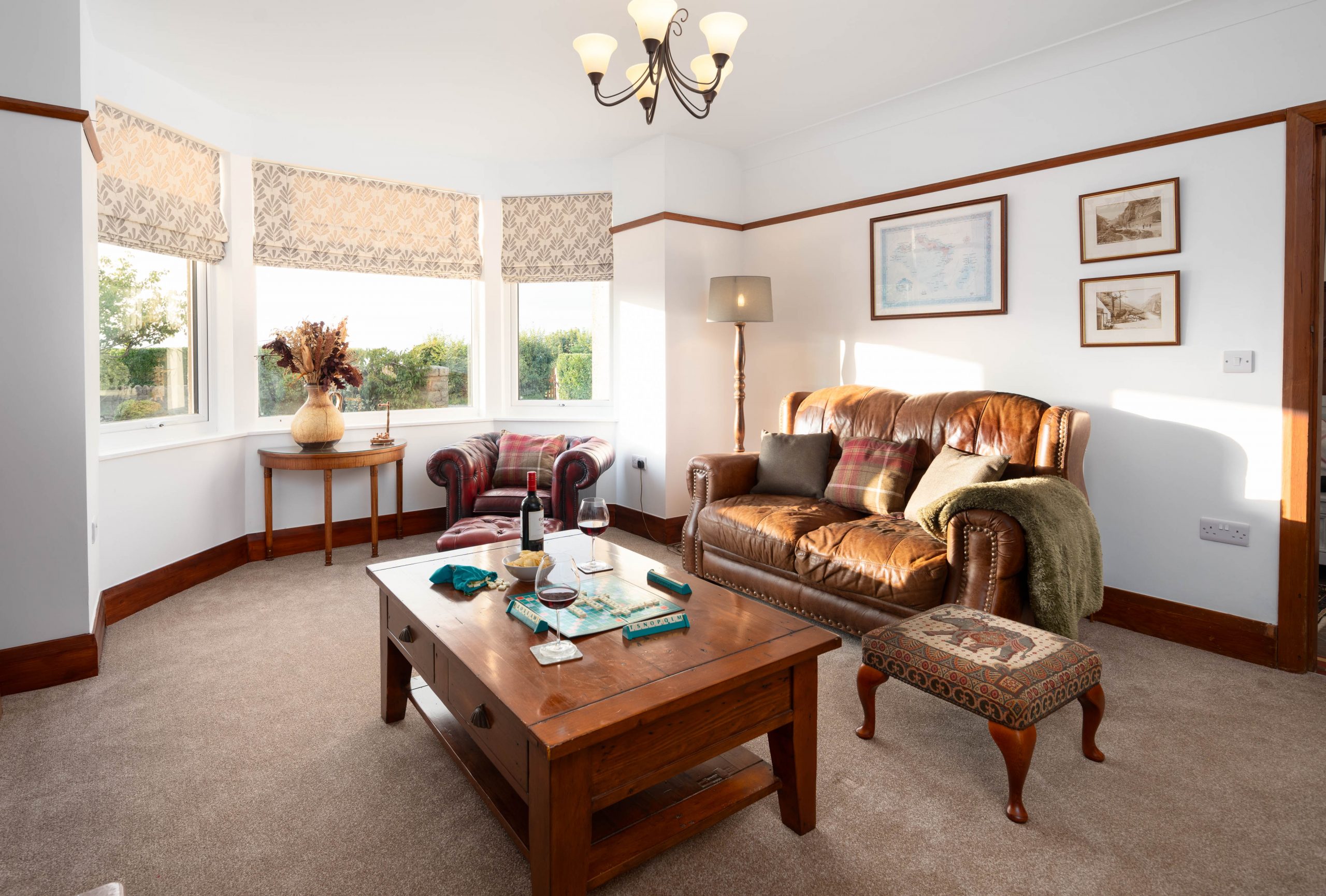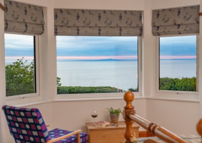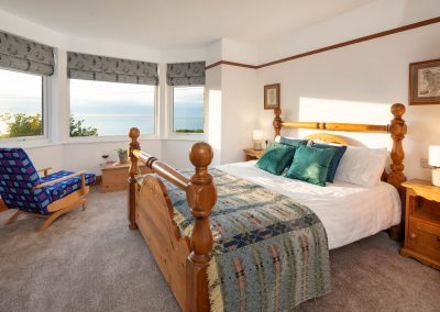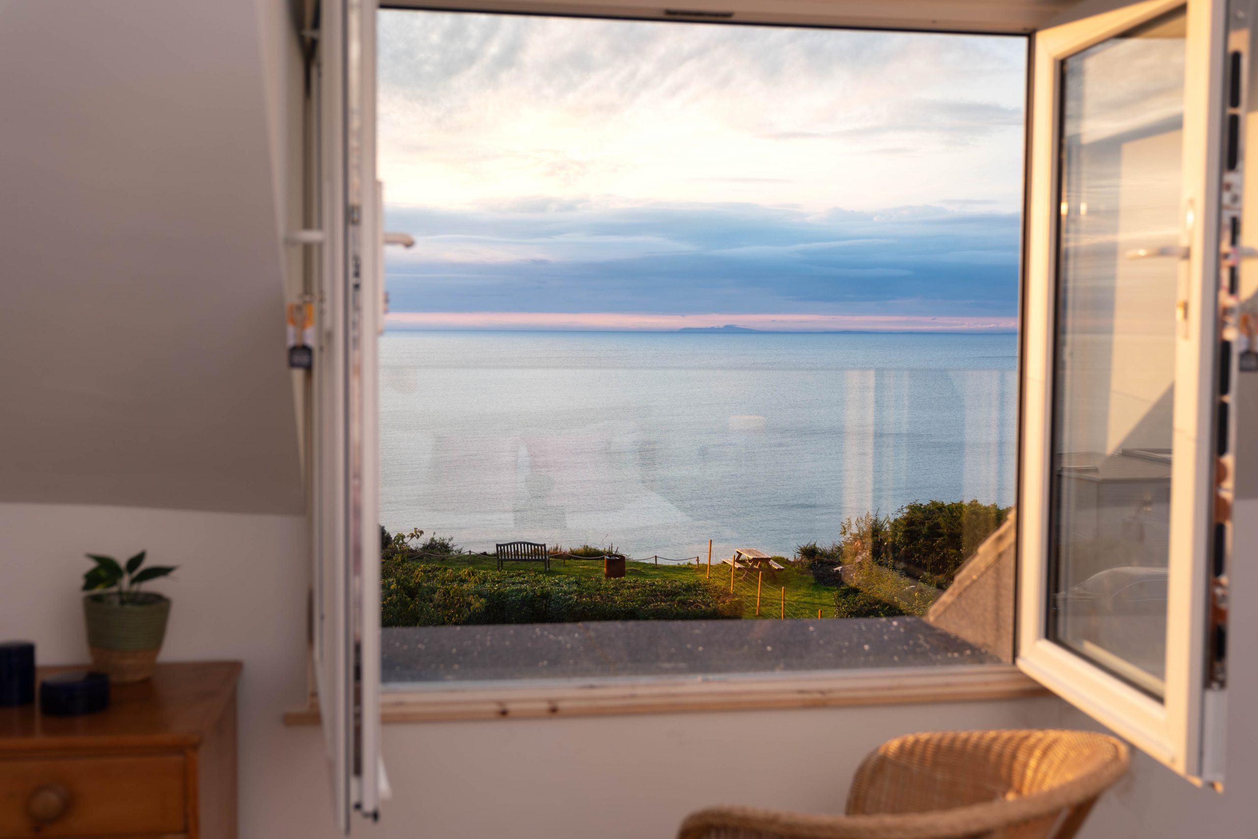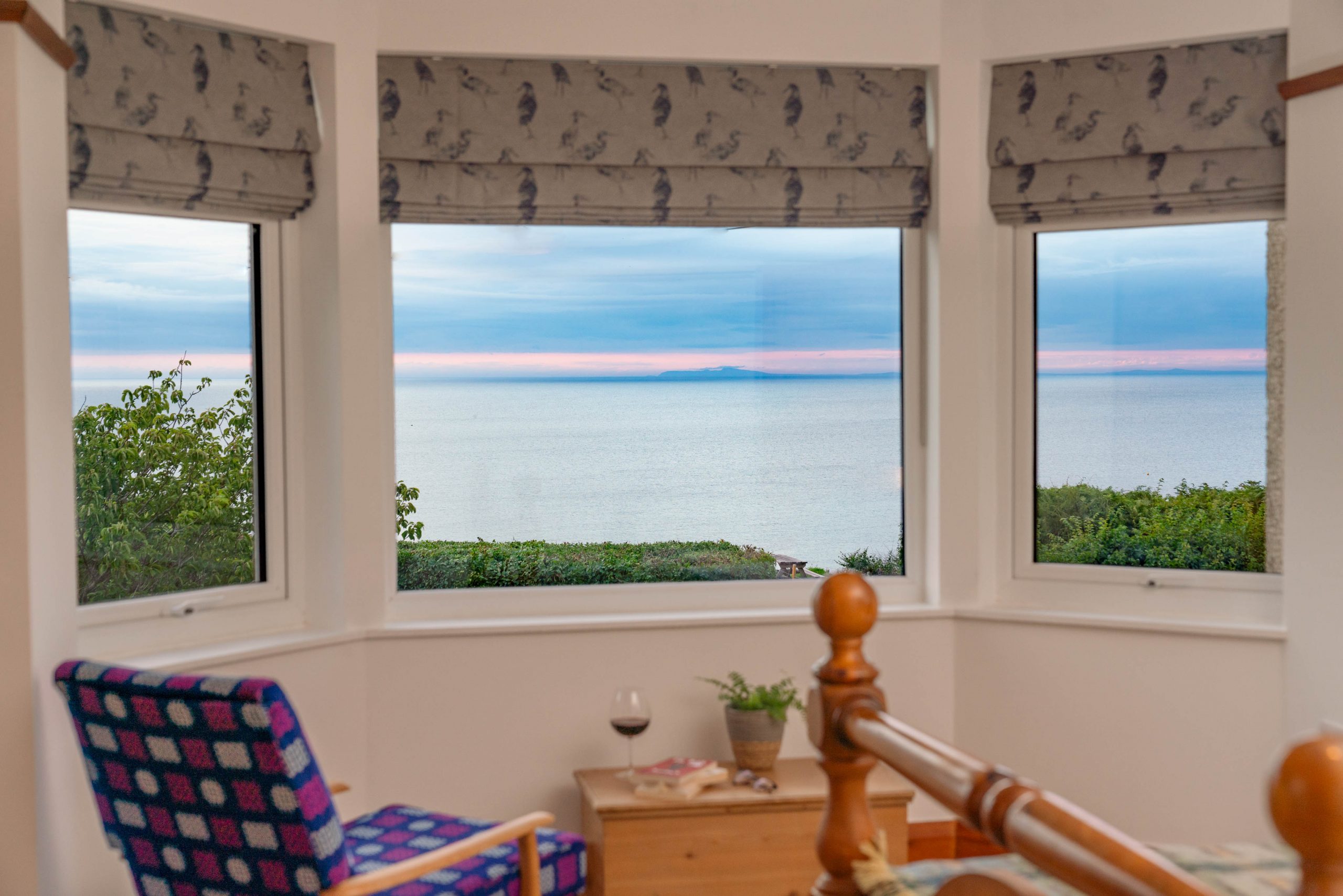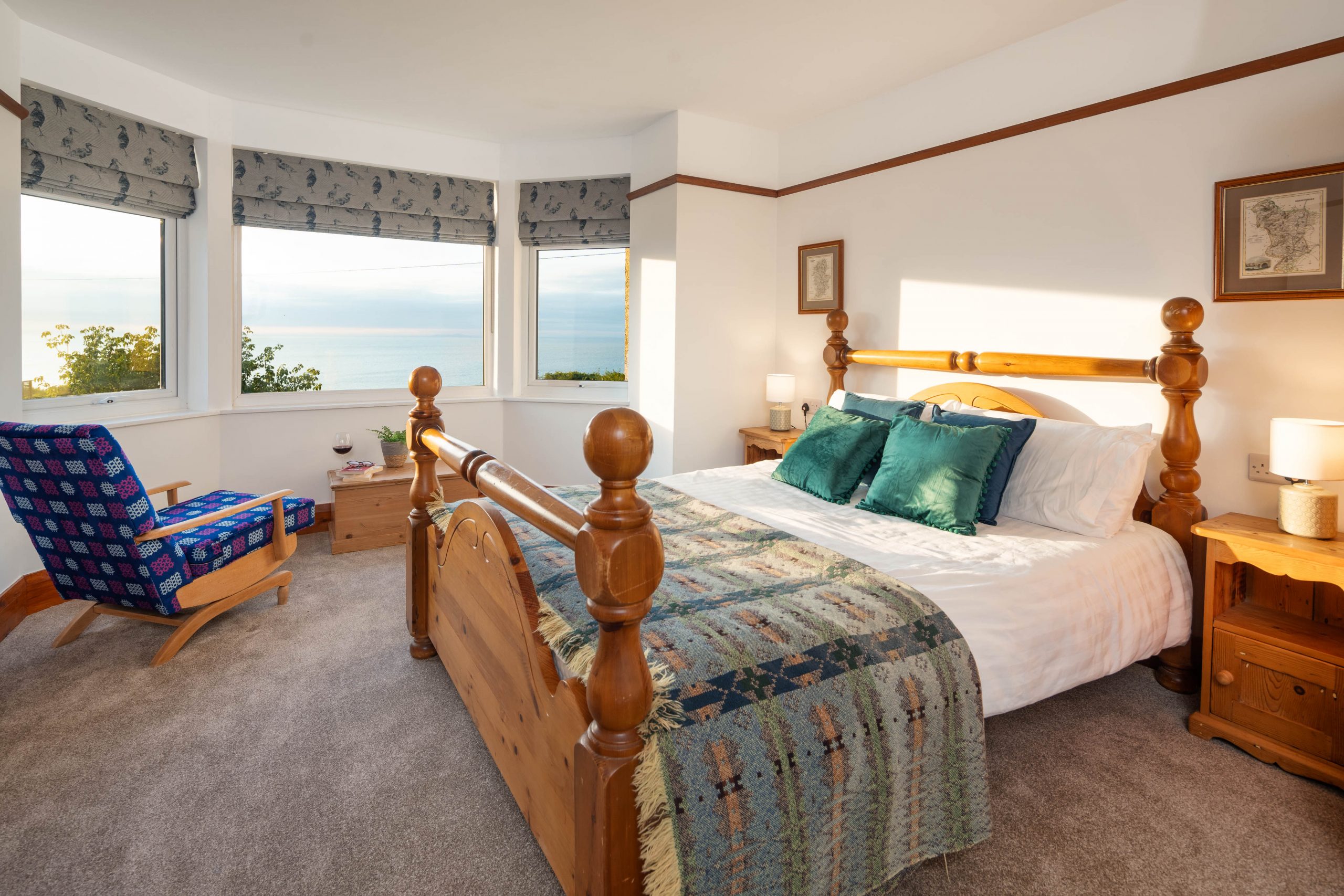 First floor bedrooms include one king room with sea views and one double room with garden and mountain views. Family bathroom consists of both bath and shower, additional W/C and reading snug with sea views.