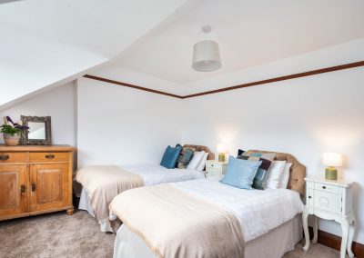 Second floor bedroom include one double room with sea views and one twin room with garden and mountain views. Second bathroom with standalone bath.